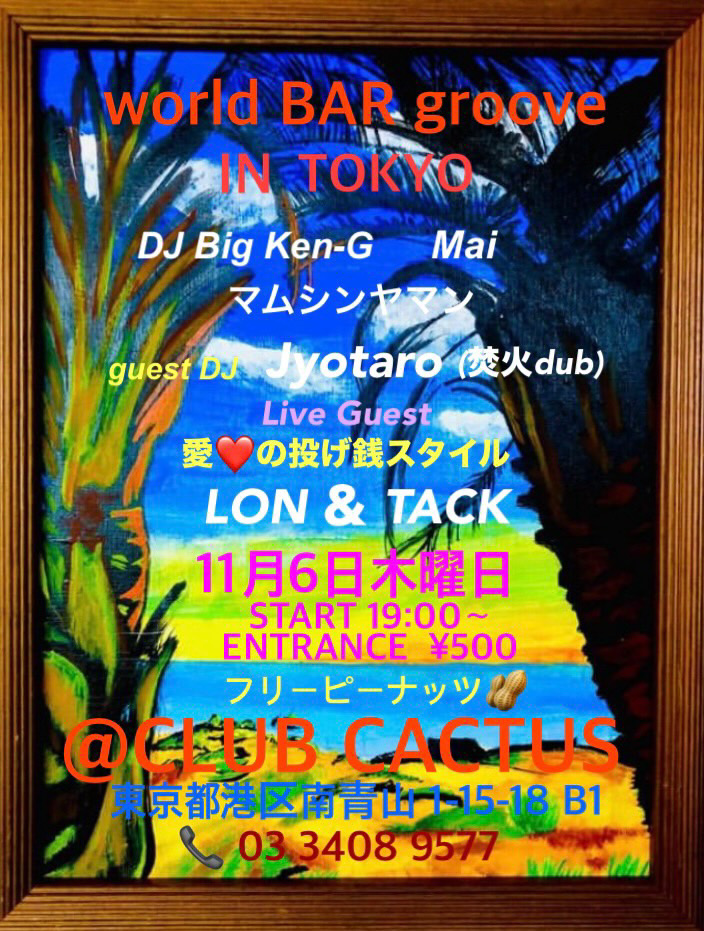 乃木坂駅から数秒、渋いバー 『CLUB CACTUS』にて開催です!